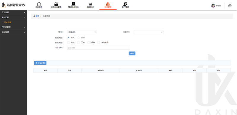 達新集團POS機客戶(hù)管理系統實(shí)現客戶(hù)管理、日常辦公管理、數據統計、財務(wù)管理、權限設置等功能需求。